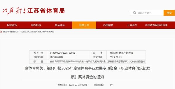 【大河财立方音问】7月27日音问,江苏省体育局近日发布对于组织陈说2026年度省体育业绩发展专项资金(办事体育俱乐部发展)奖补资金的见知,开展俱乐部奖补资金的陈说使命。 字据奖补圭臬,中超冠军奖补3000万元,亚军奖补2000万元,季军奖补1500万元。此外,男足中甲、中乙,女足中超,以及篮球、排球等也有相应的专项资金奖补。 字据见知骨子,办事体育俱乐部央求奖补资金须稳健以下条目: 1.俱乐部字据上一赛季(2024赛季或联赛已舍弃的2024-2025赛季)进入的寰宇高等别办事联赛得益央求奖补资...25-10-16