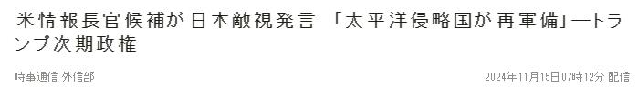 除卢比奥除外,日本政府还锁定了多个方针,比如好意思国福克斯新闻主抓东说念主、国防部长提名东说念主皮特·海格塞斯,好意思国总统国度安全事务助理提名东说念主迈克·沃尔茨等。