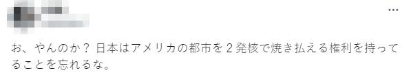 以致有东说念主放狠话,回怼说念,“不要健忘,日本有权用两枚核刀兵放手好意思国城市。”不外他很快被一条留言泼了冷水,“真要打的话,现时也唯有日本被好意思国揍的份”。