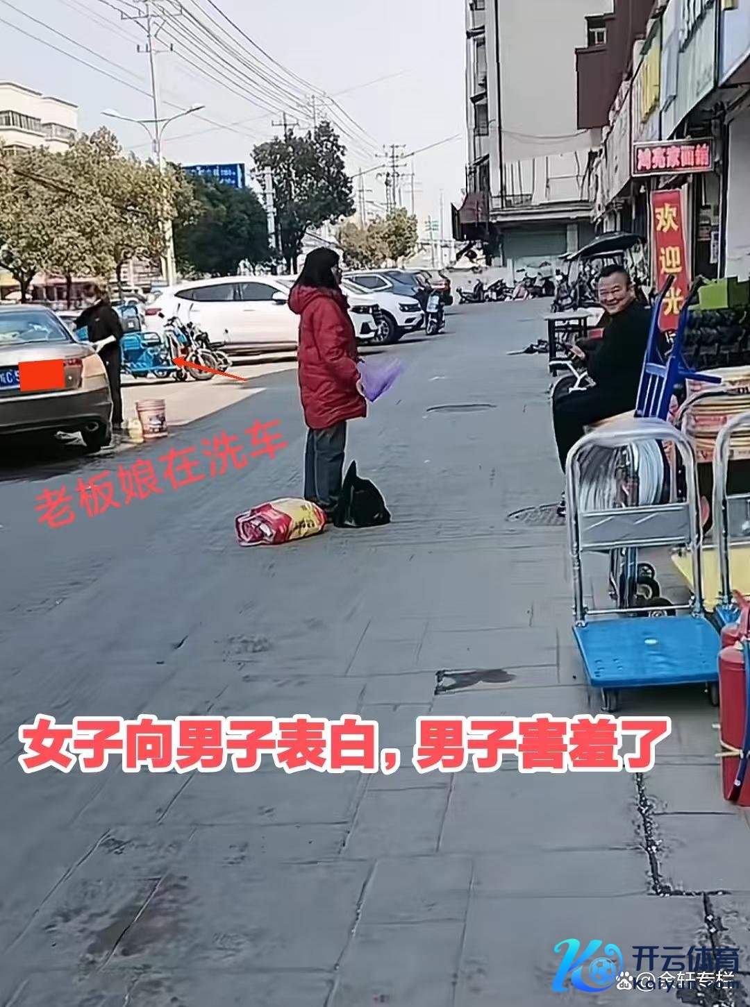 刚运转男人还一直闪躲,但如故躲不掉女子的表白,索怀坐在我方店门口的货色上,与这名女子相同了起来。