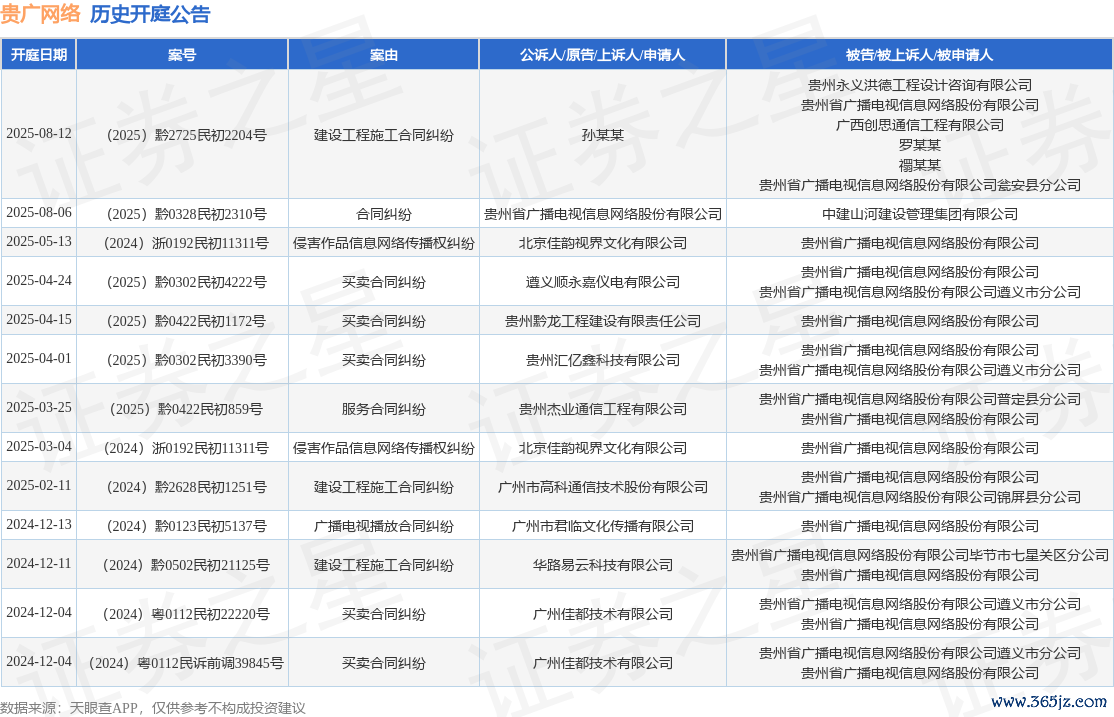 本站音尘,凭证天眼查APP表示,近日公布了一则贵州省播送电视信息网罗股份有限公司动作被告/被上诉东说念主的开庭公告,精通现实如下:
